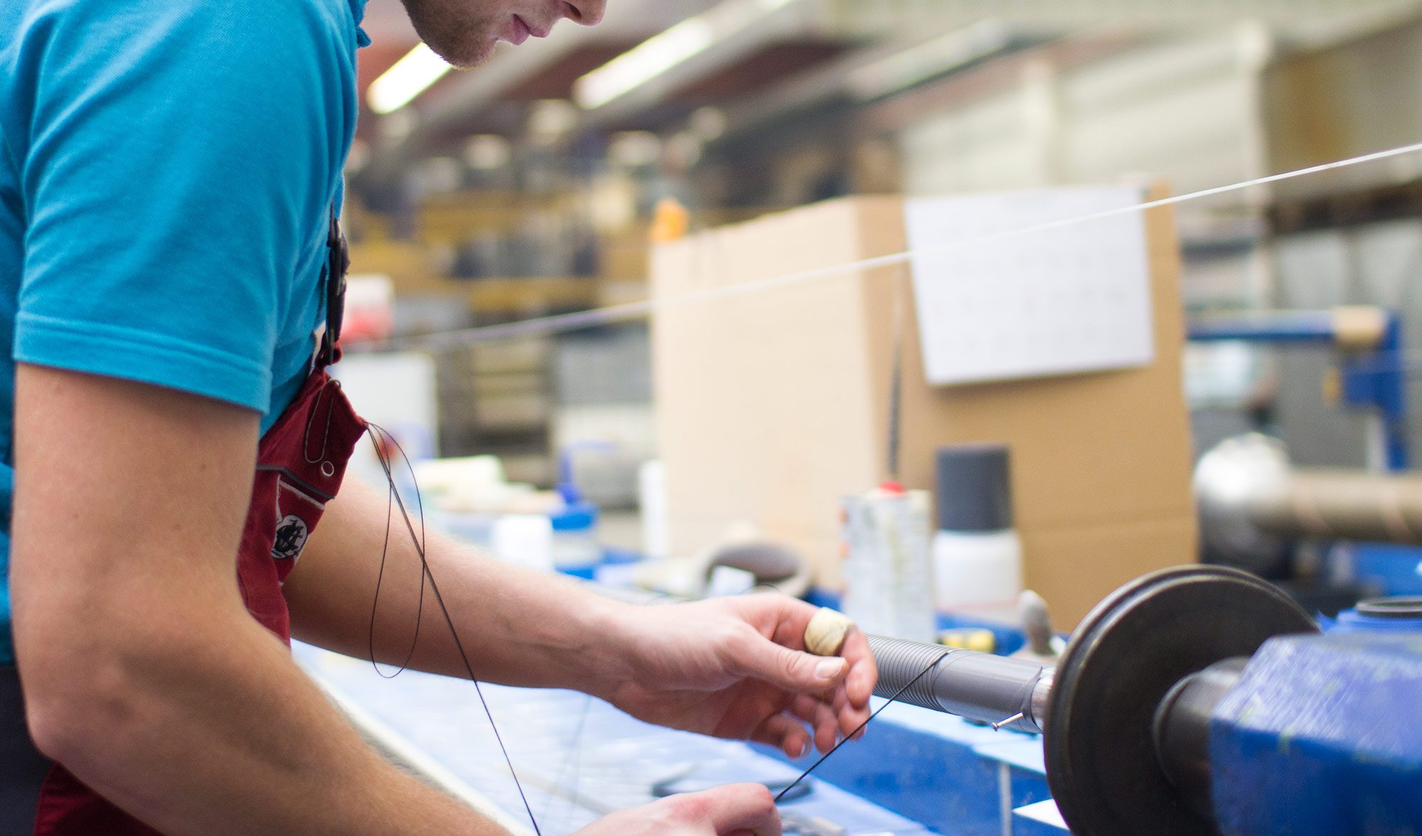 Unsere Schläuche werden in industrieller Handarbeit gefertigt. Lage für Lage werden die passgenau zugeschnittenen Kunststoffbahnen sorgfältig um einen rotierenden Dorn gewickelt. Je nach Schlauchtyp erhält der Rohling zusätzlich eine Armierung aus Stahldraht, die ebenfalls präzise per Hand aufgebracht wird. Im letzten Schritt folgt das Vulkanisieren. Bei Temperaturen weit über 100 Grad verschmelzen die einzelnen Lagen miteinander, sodass ein hochfester High-Tech-Schlauch entsteht. Das Ergebnis ist ein Produkt, das exakt den Anforderungen entspricht und höchste Präzision, Zuverlässigkeit und Performance bietet. Oft sind für das Abziehen des fertigen Schlauchs vom Dorn mehrere Mitarbeiter nötig, so exakt sitzt er in Form und Passung.